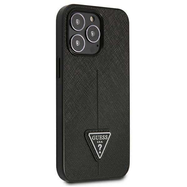 Guess SaffianoTriangle logotipo dėklas – dėklas, skirtas iPhone 13 Pro (juodas)