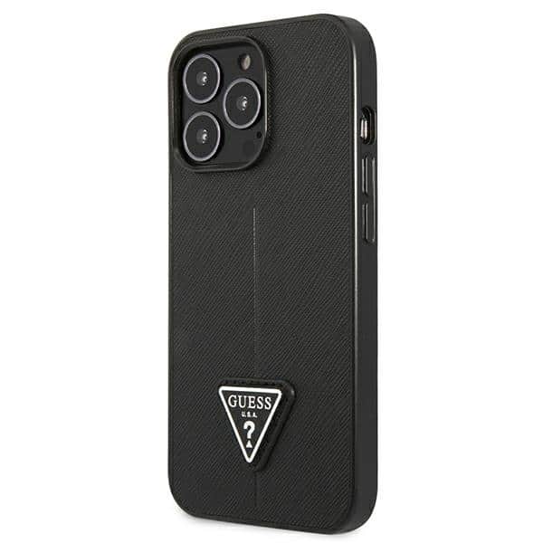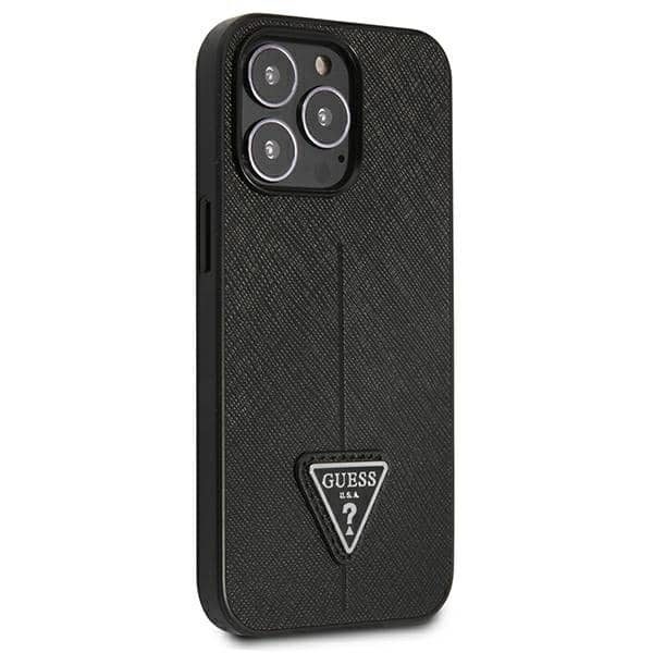 Guess SaffianoTriangle logotipo dėklas – dėklas, skirtas iPhone 13 Pro Max (juodas)
