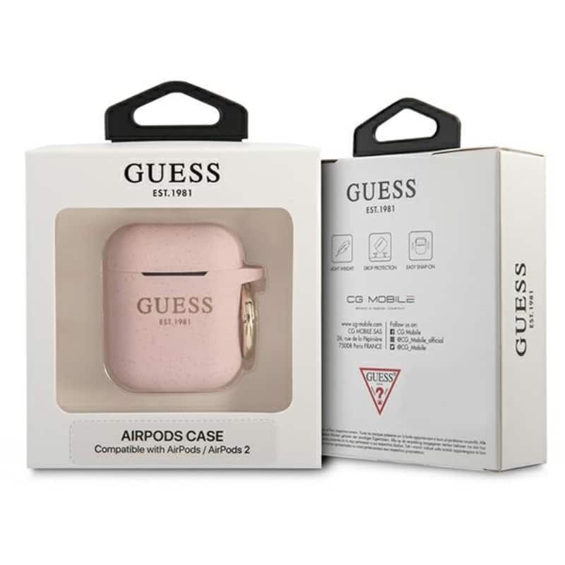 Guess Silicone Glitter Est – Airpods dėklas (rožinis)