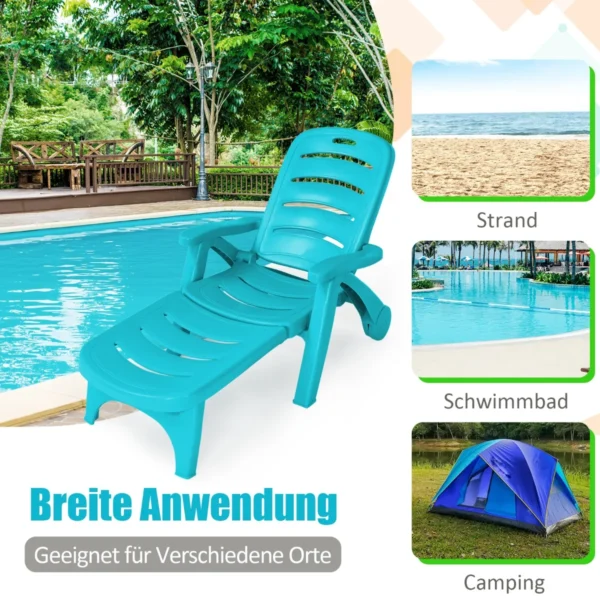 Gultas 186×75,5x52cm mėtinės spalvos puikiai tinka poilsiui lauke. Reguliuojamas atlošas ir konvertuojamas dizainas suteikia patogumo įvairiomis lauko sąlygomis, pavyzdžiui, sode, prie baseino ar paplūdimyje.