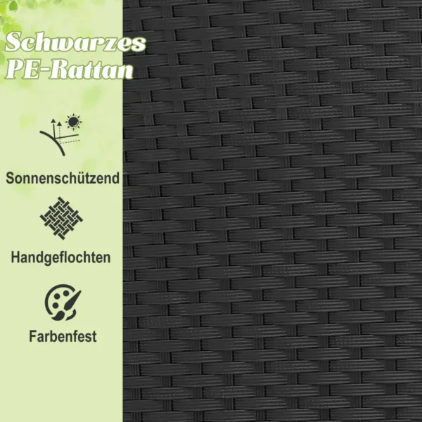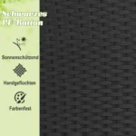 - Pagaminta iš juodo PE rotango ir tvirto metalinio rėmo, pritaikyto lauko naudojimui.
