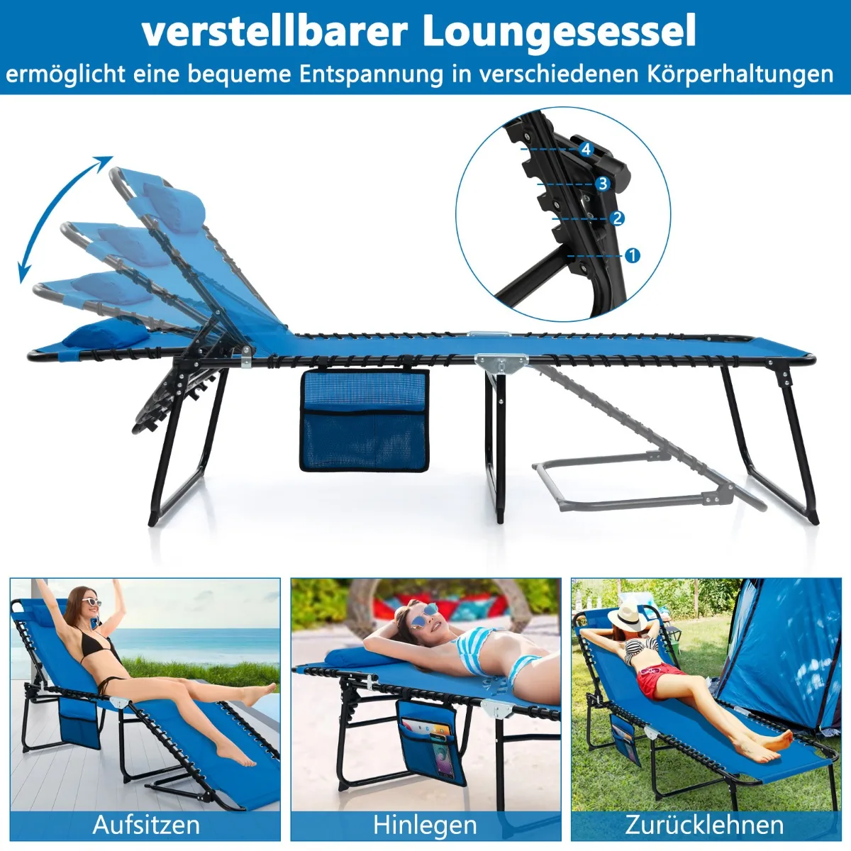 Gultas 188x59x41cm, mėlynos/juodos spalvos – patogus ir praktiškas pasirinkimas poilsiui lauke. Reguliuojamas atlošas ir kojų atrama leidžia susireguliuoti patogiausią padėtį tiek skaitymui, tiek deginimuisi ar miegojimui. Sulankstomas dizainas užtikrina patogų laikymą ir pernešimą.