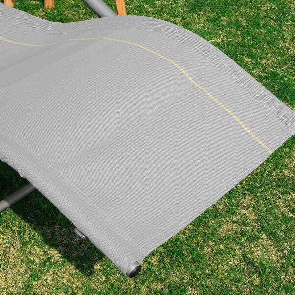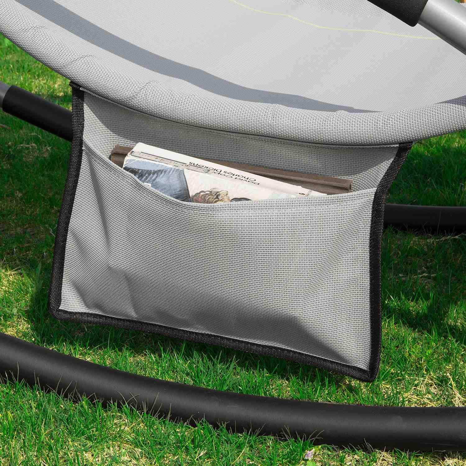 Šis gultas išsiskiria neįprastu, stilingu dizainu ir dinamiška charizma, todėl tampa matoma atrakcija jūsų sode. Jis pagamintas iš patvarios, orui atsparios pilkos medžiagos, turi funkcionalią galvos atramą ir tvirtą juodą sluoksnį ant lenktų porankių ir slidžių.