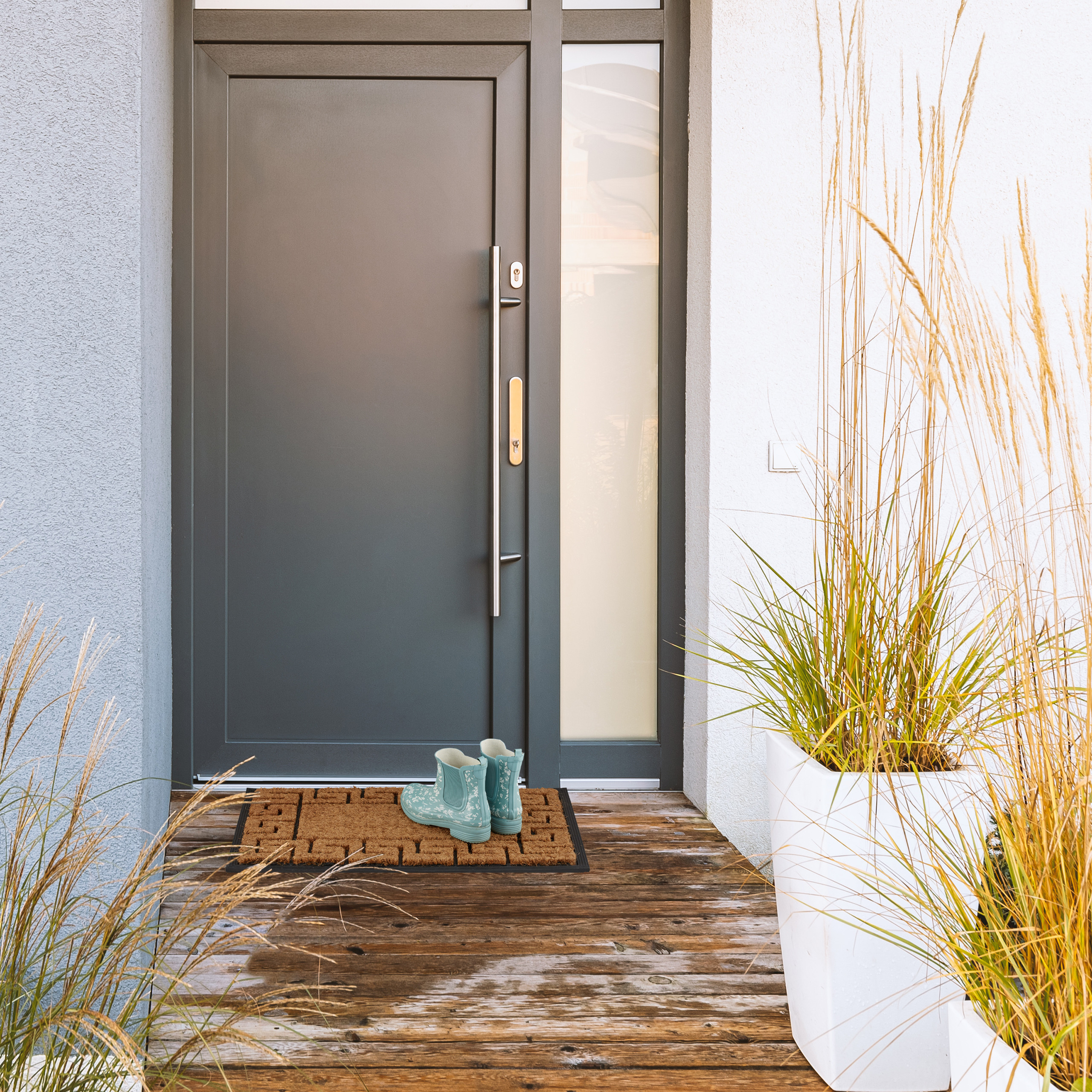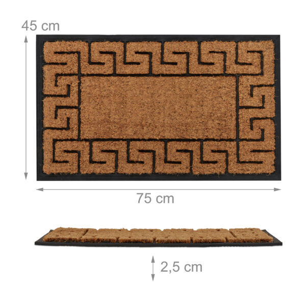 • Stilingas dizainas: Graikiškas vingiuotas raštas iš juodos gumos ir kokoso pluošto suteikia kilimėliui išskirtinį ir patrauklų vaizdą.