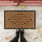 Pasitikite savo svečius stilingai ir praktiškai su šiuo aukštos kokybės guminiu durų kilimėliu. Jo elegantiškas šviesiai rudos ir juodos spalvų derinys puikiai derės prie bet kokio interjero, o funkcionalumas užtikrins, kad jūsų namai išliktų švarūs ir tvarkingi.