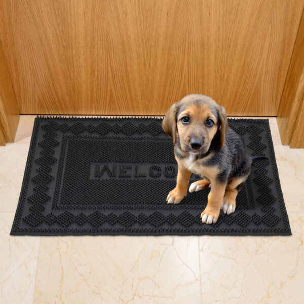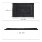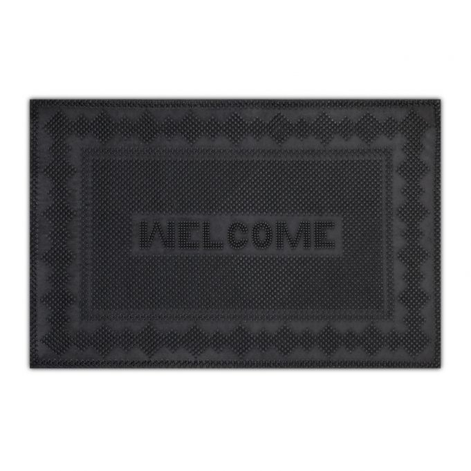 Pasitikite savo svečius su stilingu ir funkcionaliu guminio durų kilimėlio „Welcome” dizainu. Šis kilimėlis ne tik suteikia šilto sutikimo jausmą, bet ir užtikrina švarią įėjimo zoną, nepriklausomai nuo oro sąlygų.