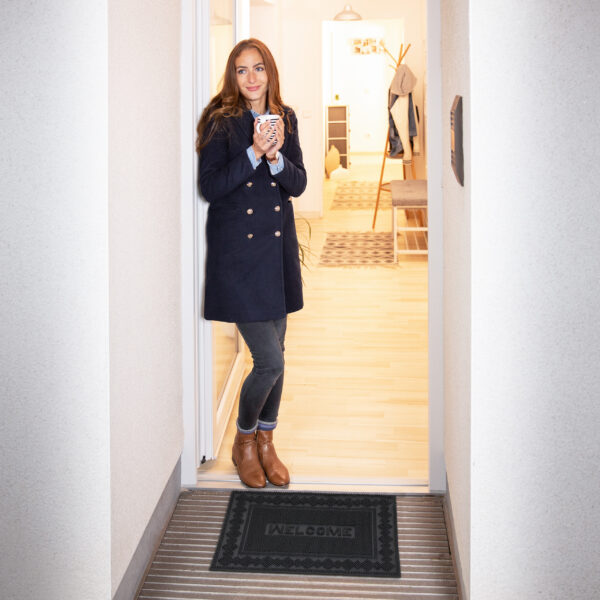 Pasirinkite guminį durų kilimėlį „Welcome” ir mėgaukitės švaria bei tvarkinga įėjimo zona kiekvieną dieną!