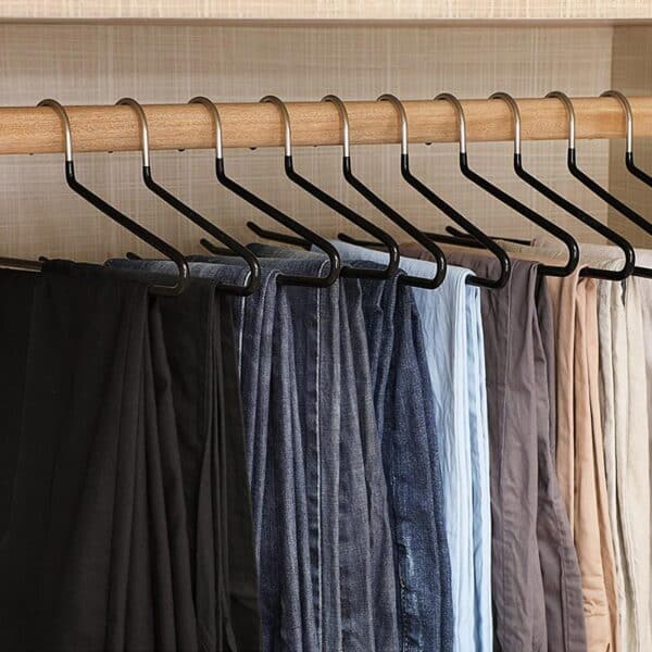 Mėgaukitės malonia tvarka spintoje su SONGMICS kelnių pakabų rinkiniu. Šios pakabos yra ne tik praktiškos, bet ir taupo vietą. Dėl atviro dizaino galite greitai ištraukti kelnes iš spintos, taip sutaupydami laiko.
