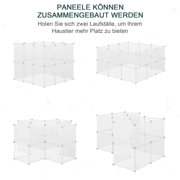 Atraskite „PawHut Pet Playpen“ – puikų sprendimą šeimoms su mažais augintiniais. Šis universalus maniežas siūlo erdvią erdvę, kurioje jūsų augintiniai gali saugiai žaisti ir atsipalaiduoti. Dėl lanksčių konfigūracijų jį galima lengvai pritaikyti jūsų namuose, nesvarbu, ar tai būtų svetainėje, ar sode. Idealiai tinka kačiukams, triušiams, šinšiloms, ežiams ir jūrų kiaulytėms, užtikrina harmoningą sambūvį ir suteikia ramybę, kad jūsų gyvūnai yra saugioje aplinkoje. Būtinas kiekvienuose gyvūnus mylinčiuose namuose.