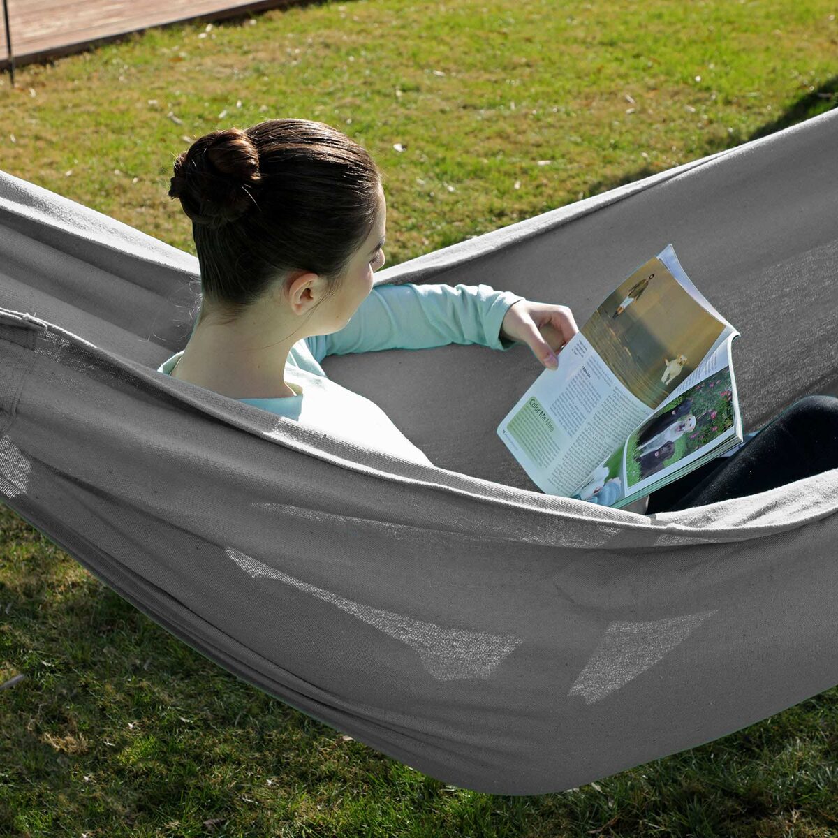 Šis pilkos spalvos hamakas yra puikus pasirinkimas poilsiui tiek namuose, tiek lauke. Pagamintas iš aukštos kokybės medžiagų, jis užtikrina patogumą ir ilgaamžiškumą.