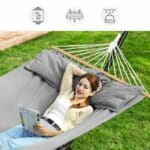 Pritvirtinkite šią plūduriuojančią lovą prie dviejų medžių ir atsisėskite arba atsigulkite po kepsninės vakarėlio. Jūsų vaikai ir šunys žaidžia netoliese, o jūs supasi pirmyn ir atgal šiame hamake – puikios atostogos su visa šeima!