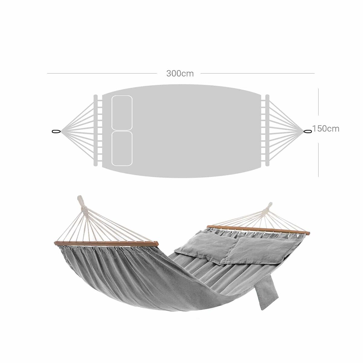 Su šiuo hamaku susikursite savo poilsio oazę balkone arba terasoje. Arba eikite į gamtą ir naudokitės šiuo hamaku miške ar prie ežero. Ten, kur auga medžiai arba yra hamako stovas, yra galimybė įsigyti šį hamaką.