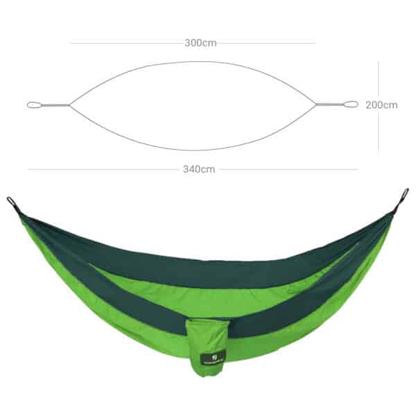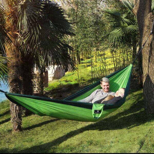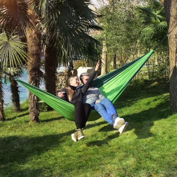 Atsipalaidavimui 2 asmenų hamakas puikiai tinka atsipalaiduoti stovyklaujant ar sode. Mėgstantiems keliauti, keliauti po mišką ar kalnus, šis lengvai ir greitai supakuojamas hamakas bus puikus kompanionas, nes užima labai mažai vietos ir su juo galėsite atsipalaiduoti akimirksniu. Tvirtas ir patvarus, lengva valyti ir greitai išdžiūti, todėl puikiai tiks keliaujant. Taip pat ilgai išlieka spalva, todėl hamaku galėsite džiaugtis ilgai.