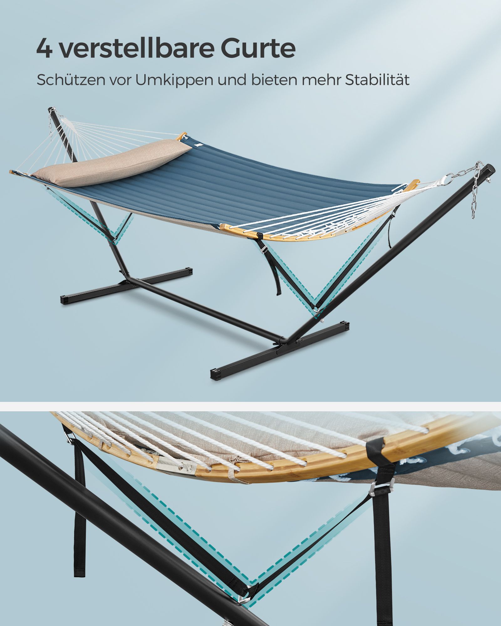 - Spalva: Juodas rėmas, mėlynas hamakas