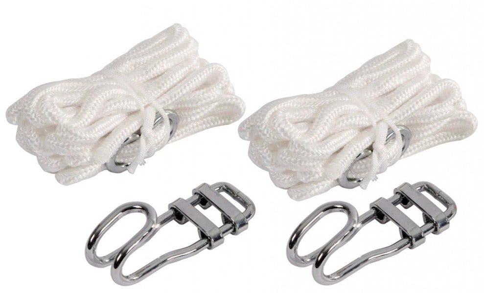 Pilnas komplektas tvirtinimui hamake. Rinkinį sudaro du plieniniai kabliukai su dviem 3,8 m žarnomis. Turi du tvirtus plieninius kabliukus. Maksimali apkrova 160 kg.