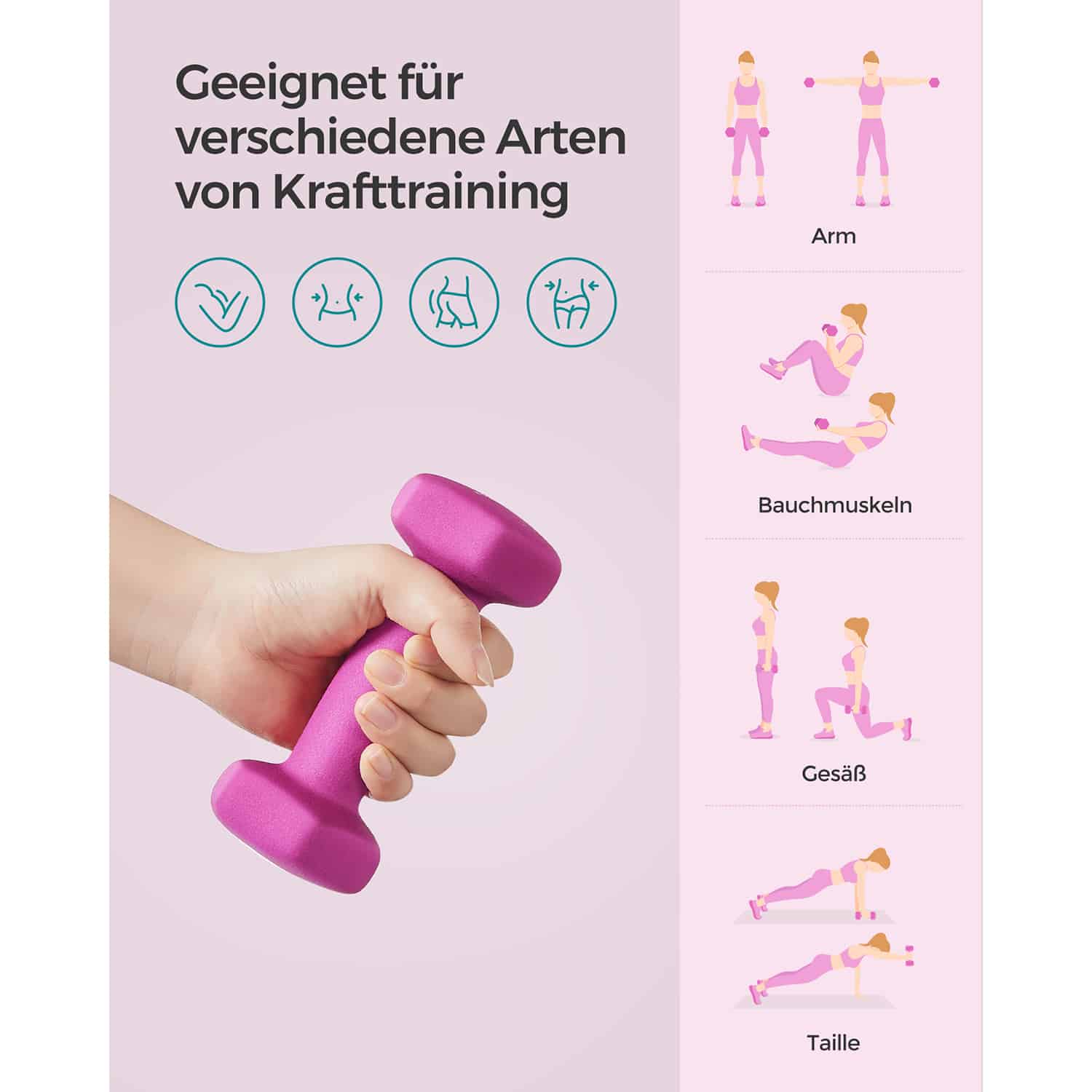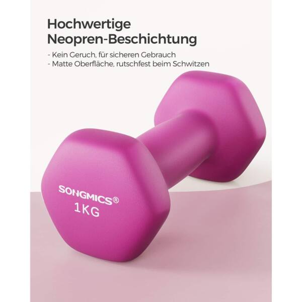 Neopreno danga ne tik suteikia patogumą, bet ir apsaugo grindis nuo pažeidimų, kai hanteliai yra padedami ant žemės. Šis hantelių rinkinys yra puikus pasirinkimas įvairiems pratimams, įskaitant jėgos treniruotes, aerobiką ir reabilitaciją.