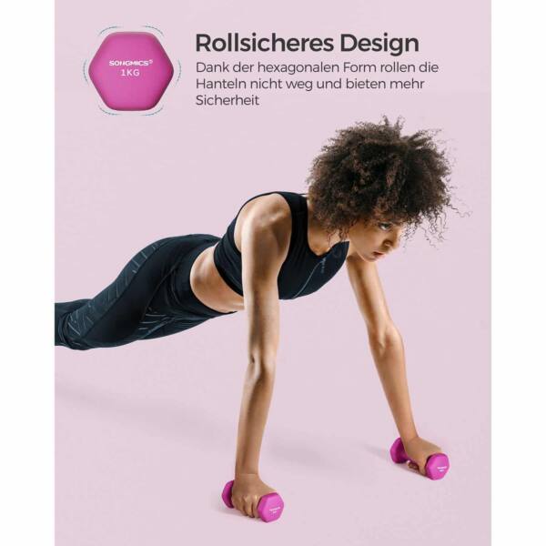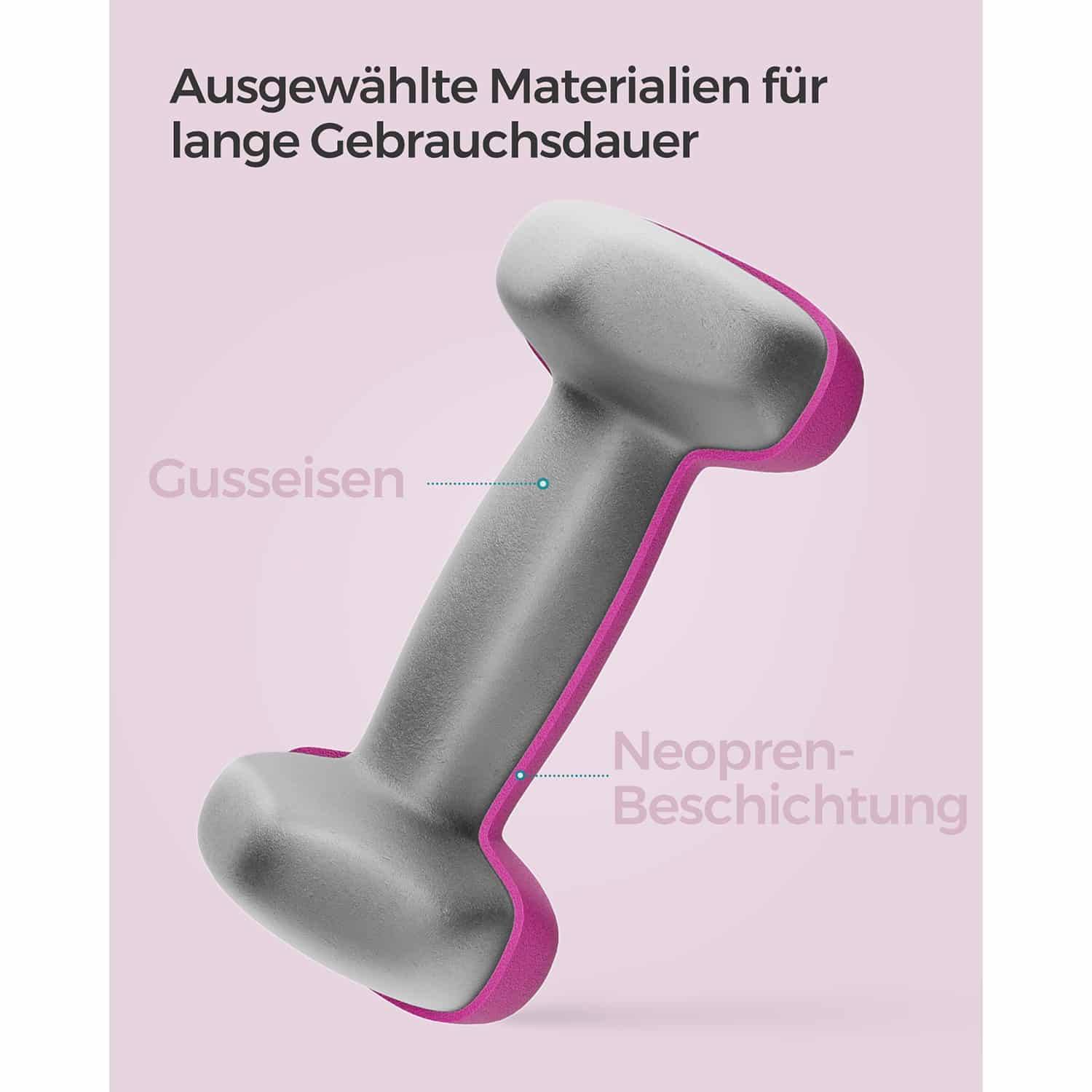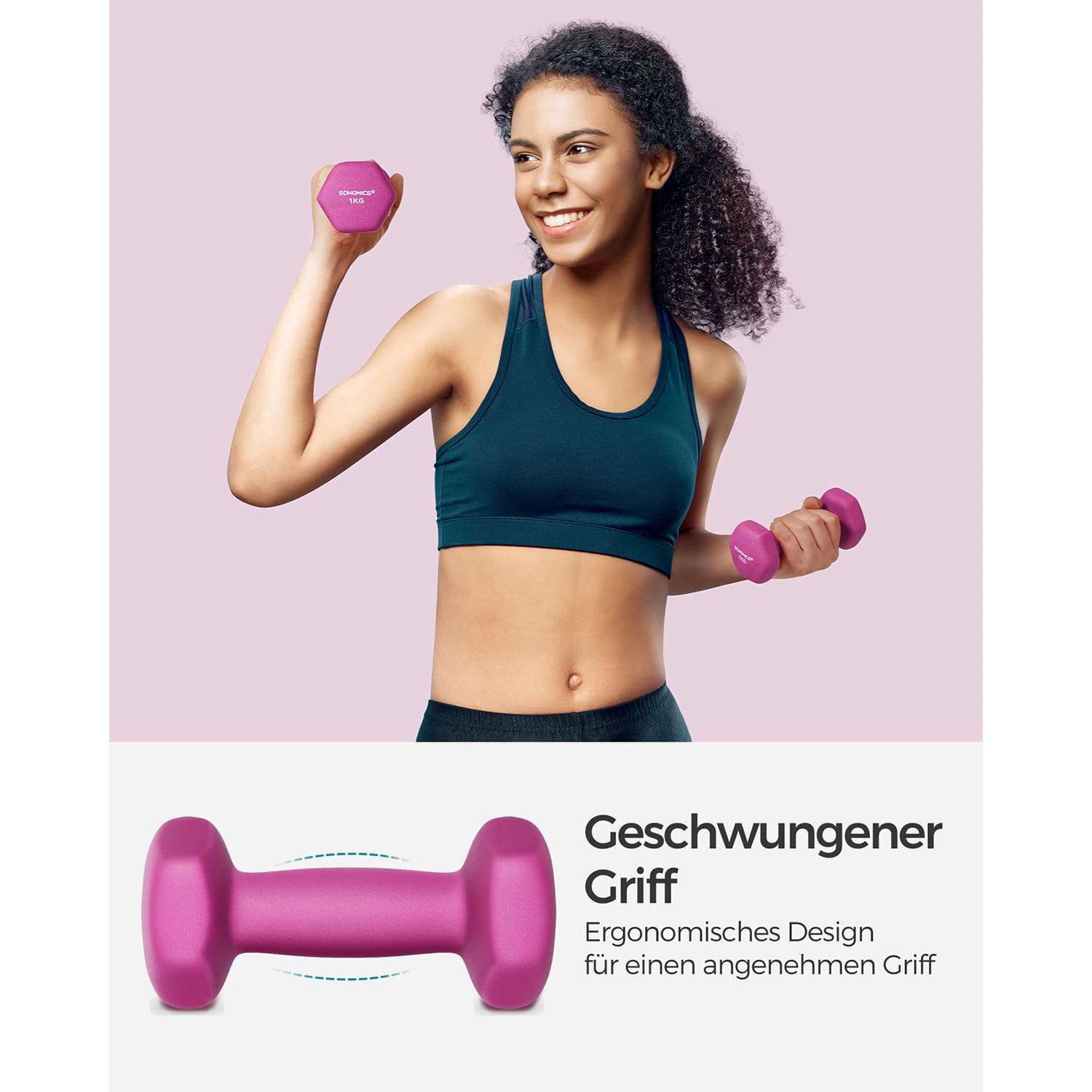 Šis hantelių rinkinys, kurį sudaro du 1 kg svorio hanteliai, yra puikus pasirinkimas tiek pradedantiesiems, tiek pažengusiems sportininkams. Rožinės spalvos hanteliai yra pagaminti iš ketaus ir padengti neopreno danga, užtikrinančia patogų ir saugų laikymą.