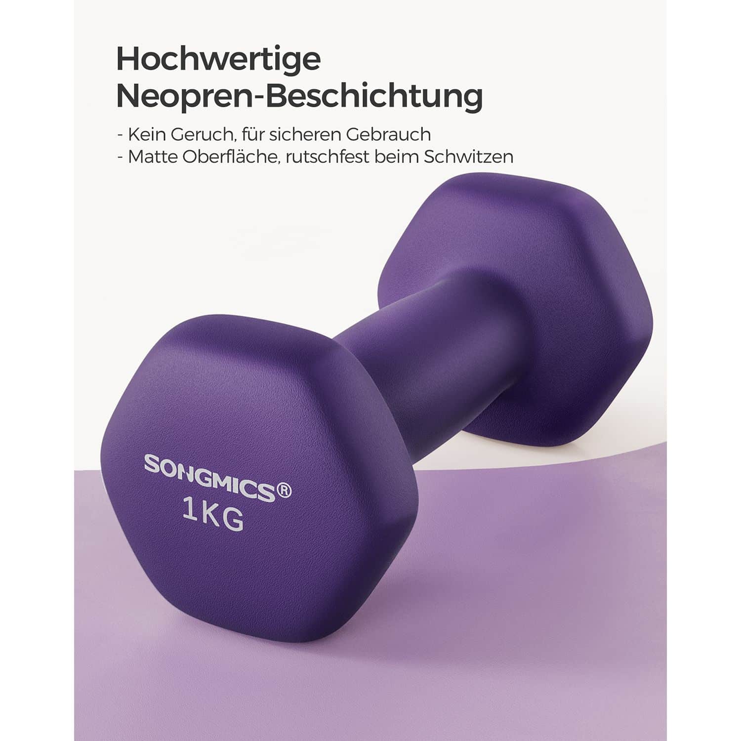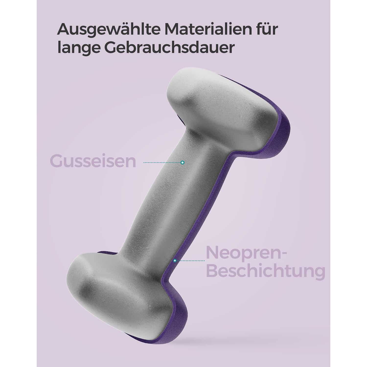 Šis hantelių rinkinys, kurį sudaro du 1 kg svorio violetinės spalvos hanteliai, yra puikus pasirinkimas tiek pradedantiesiems, tiek pažengusiems sportininkams. Hanteliai yra pagaminti iš aukštos kokybės ketaus, padengto neopreno danga, kuri užtikrina patogų ir saugų laikymą.