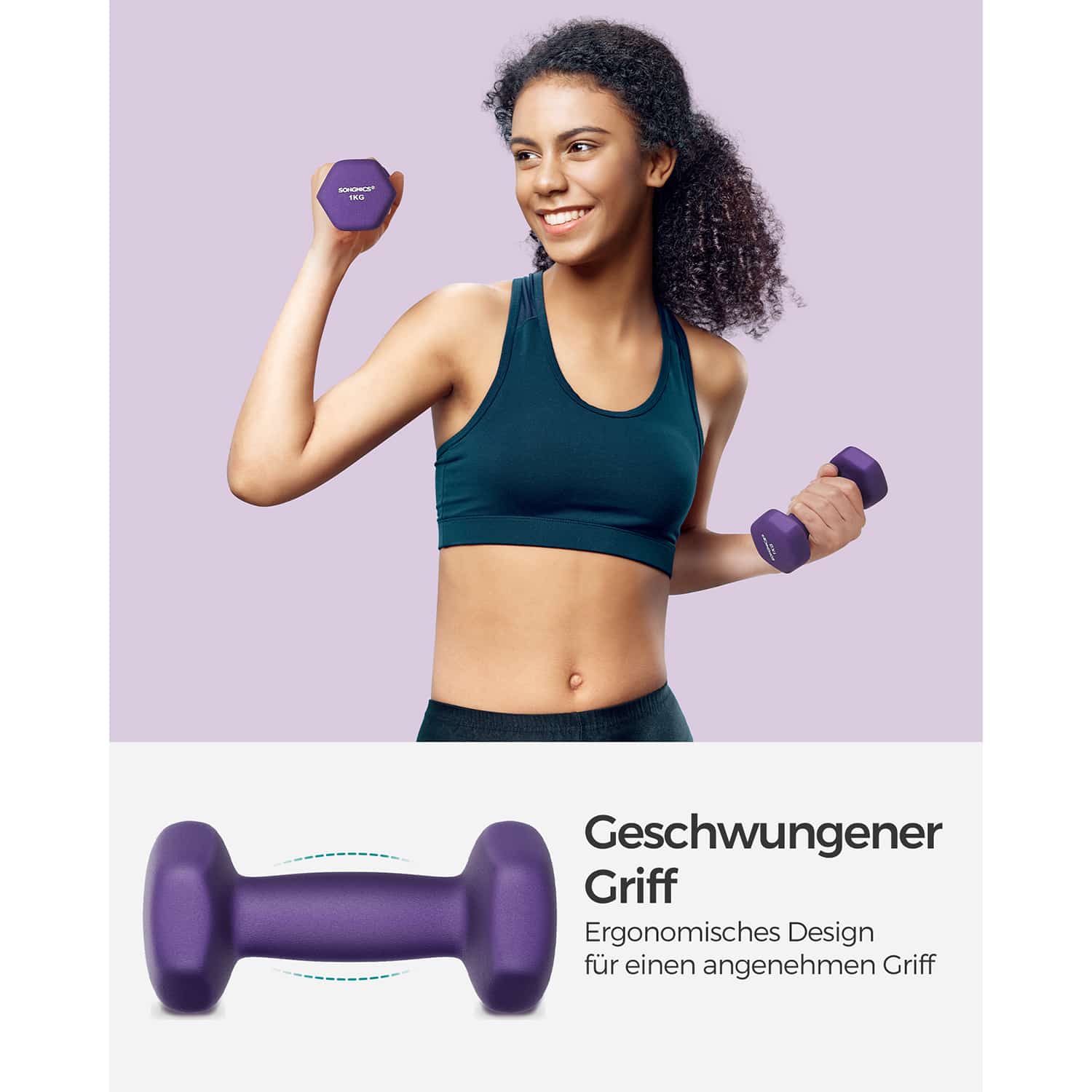 Hantelių rinkinys 2 x 1 kg, violetinės spalvos