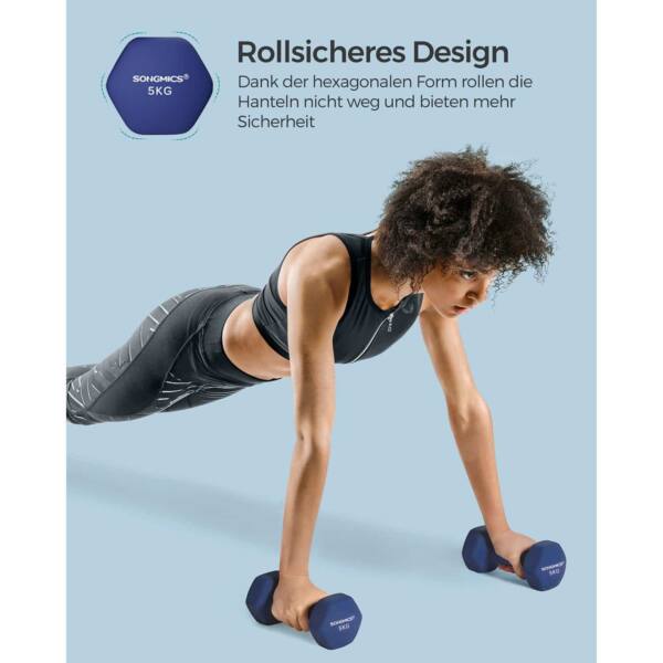 Šis hantelių rinkinys, kurį sudaro du 5 kg svorio hanteliai, yra puikus pasirinkimas tiek pradedantiesiems, tiek pažengusiems sportininkams. Tamsiai mėlynos spalvos hanteliai ne tik atrodo stilingai, bet ir yra patvarūs bei patogūs naudoti.