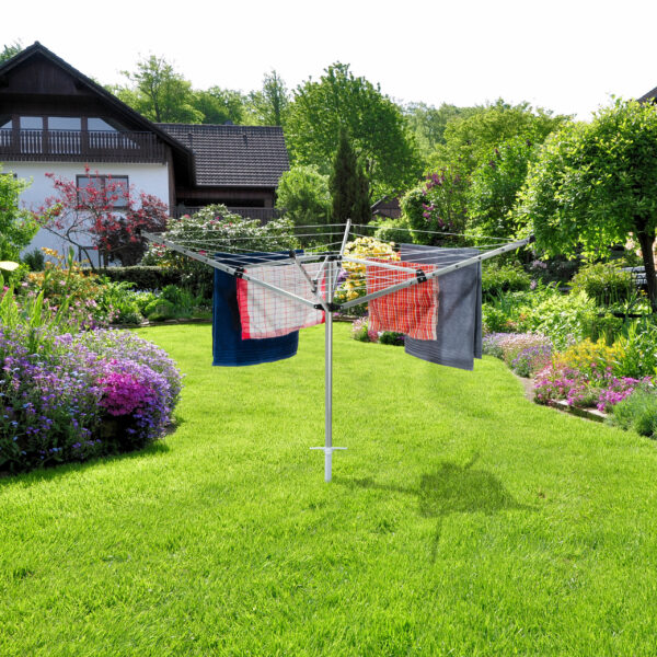 Universalus naudojimas: Puikiai tinka kaip saulės skėčio laikiklis arba sukamąją drabužių džiovyklę sode.