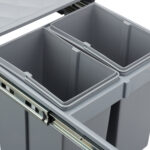 - Kompaktiškas dizainas: Šiukšliadėžė yra įmontuojama į virtuvės spintelę, todėl ji nepastebima ir neužima papildomos vietos.