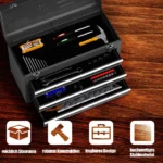 Įrankių dėžė 52x22x30 cm, juodos spalvos, skirta patogiam įrankių laikymui ir transportavimui. Tvirta metalinė dėžė su 3 stalčiais ir viršutine lenta užtikrina pakankamai vietos įvairiems įrankiams ir reikmenims. Dėžė tinka tiek namų, tiek dirbtuvių naudojimui.
