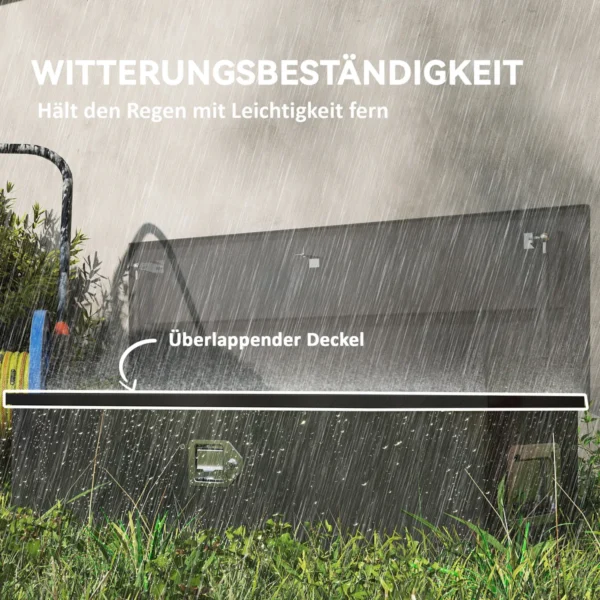 Ar ieškote praktiško saugojimo sprendimo keliaujant? Tvirta HOMCOM transportavimo dėžė užtikrina optimalią jūsų daiktų apsaugą dėl aliuminio konstrukcijos ir atsparumo oro sąlygoms. Užrakinamas, erdvus dizainas tinka daugeliui priekabų tipų ir yra būtinas norint saugiai ir tvarkingai laikyti įrangą.