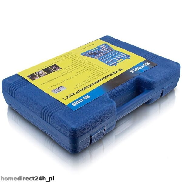 94 VIENŲ ĮRANKIŲ RINKINYS Šis 94 dalių aukščiausios kokybės įrankių rinkinys puikiai tinka „pasidaryk pats“ ar pažengusiems naudotojams. Įrankiai pagaminti iš chromo-vanadžio įrankių plieno, kuris pasižymi dideliu tvirtumu ir ilgaamžiškumu. Į RINKINĮ įtraukta: ; – 18 1/2″ lizdų rinkinys nuo 10 iki 32 mm – 13 1/4″ lizdų rinkinys nuo 4 iki 14 mm – 1/2″ reketo rankenėlė – 1/4″ reketo rankenėlė – jungtis 1/2″ – jungtis 1/4″ – uždegimo žvakių lizdai 21 ir 16 mm – atsuktuvo laikiklis 150 mm – skersinė rankenėlė 1/4″ – lankstus prailginimas 1/4″ 150 mm – prailginimas 1/4″ 50 ir 100 mm – prailginimas 1/2″ 125 ir 250 mm – šešiakampių, pz, sl, ph t-bitų rinkinys 33vnt. – 3 šešiakampiai veržliarakčiai – 4 1/2″ ilgio lizdų rinkinys nuo 14 iki 19 mm – 8 1/4″ ilgio lizdų rinkinys nuo 6 iki 13 mm Techniniai duomenys: Korpuso medžiaga: Plastikas Apytikslis svoris: 5,7 kg Įrankio medžiaga: Chromo vanadžio plienas