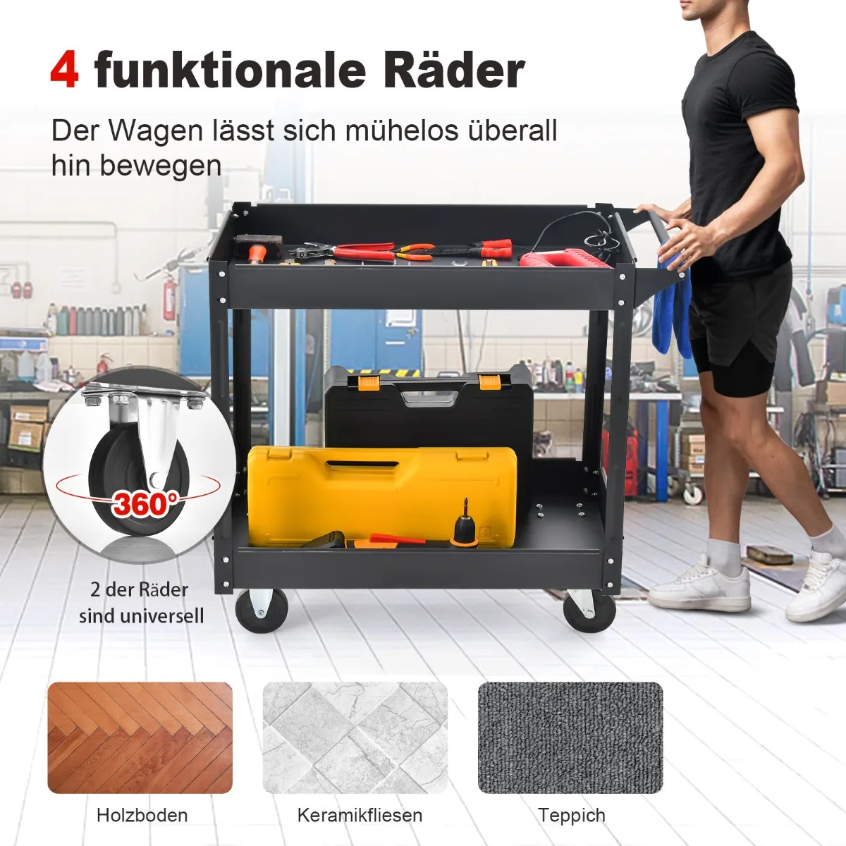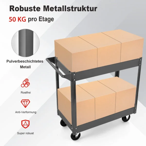 - Dviejų pakopų universalus vežimėlis, tinkantis įrankių, virtuvės reikmenų, vazoninių augalų ar maisto transportavimui.