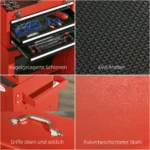 - ✔ 3 stalčiai ir viršutinė vieta įvairiems įrankiams ir techninei įrangai laikyti
