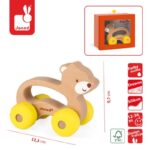 Prancūziško prekės ženklo JANOD meškiukas yra puikus kompanionas žengiant pirmuosius vaiko žingsnius. Jis mielas ir saugus. Pagaminta iš medžio ir silikono. Jis yra originalaus dizaino ir mažo dydžio, patogus kūdikiui. Tinkama skylutė leidžia lengvai laikyti rankoje, o geltoni silikoniniai žiedai yra stabilūs ir nebraižo grindų ar kitų namų paviršių.Žaislas sukurtas Prancūzijoje. Supakuota estetiškoje dėžutėje. Puikiai tinka dovanai.Baby Pop linija kūdikiams ir mažesniems vaikams – tai neįprasti žaislai ir aksesuarai, pagaminti iš kietos medienos derinio, nudažyti vandens dažais ir minkštu silikonu, todėl yra tvirti, patvarūs ir tuo pačiu saugus. Jie buvo sukurti taip, kad atitiktų dabartinius, greitai kintančius kūdikių vystymosi poreikius ir juos suaktyvintų – pirmiausia motorinės koordinacijos ir stebėjimo pojūčio pratimams. Dekoruotas šiltomis šviesaus medžio spalvomis ir geltonos, oranžinės ir mėlynos spalvos atspalviais. Visi Baby Pop serijos žaislai pažymėti FSC logotipu. Tai reiškia, kad jų gamyboje naudojama mediena yra iš FSC sertifikuotų šaltinių, ty atsakingai tvarkomų miškų, saugančių biologinę įvairovę, ekologiją ir atsinaujinančius išteklius bei čiabuvių teises.Nuo 1970 m. Janod projektuoja žaislai, kuriuose naujovės derinamos su prancūzišku dizainu ir aukščiausia kokybe. Unikalūs Janod gaminiai pagaminti iš medžio ir kitų tvirtų, patvarių medžiagų, o svarbiausia – iš vaikų svajonių! Janod – JUST PLAYProdukto savybės:A· Amžius: 12-36 mėn.· Medžiaga: mediena, silikonas· Matmenys: 12,3 x 7,6 x 9,7 cm · Svoris: 0,34 kg· Pakuotės matmenys: 16 x 8 x 14,5 cm· Sauga ir kokybė: EN71-1; EN71-2, EN71-3; REACH