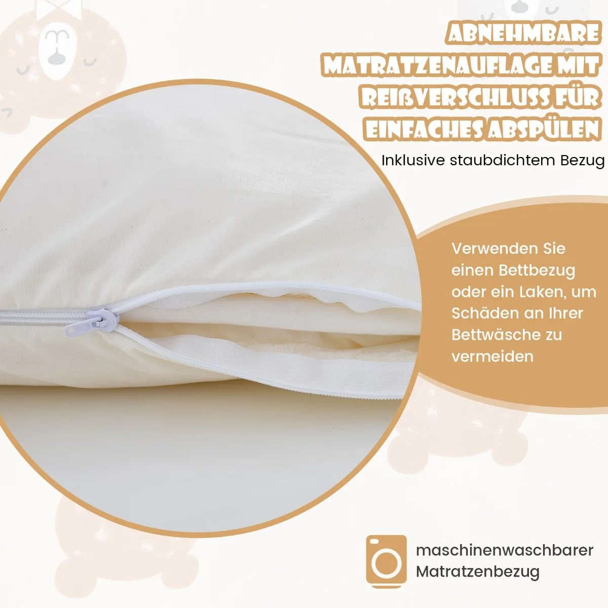 - Minkšto mikropluošto užvalkalas su lygiu užtrauktuku yra nuimamas ir skalbiamas