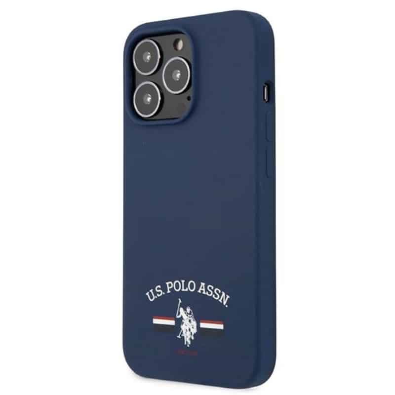 JAV „Polo Assn“ silikoninis logotipas – „iPhone 13 Pro“ dėklas (tamsiai mėlynas)