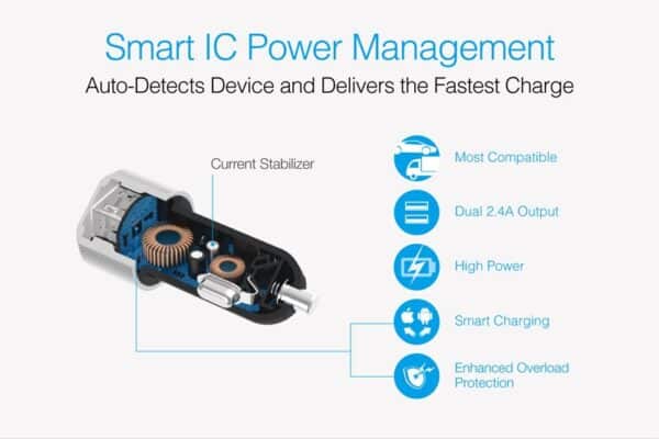Just Mobile Highway Max – automobilinis įkroviklis 2 USB prievadai (iš viso 4,8 A)
