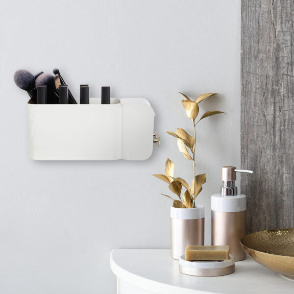Įneškite tvarkos ir elegancijos į savo vonios kambarį su šiuo universaliu kosmetikos dėžutės organizatoriumi. Sukurtas taip, kad atitiktų jūsų kasdienius poreikius, šis grožio laikiklis ne tik padės išlaikyti jūsų kosmetiką ir vonios reikmenis tvarkingai, bet ir suteiks stilingą akcentą jūsų erdvei.