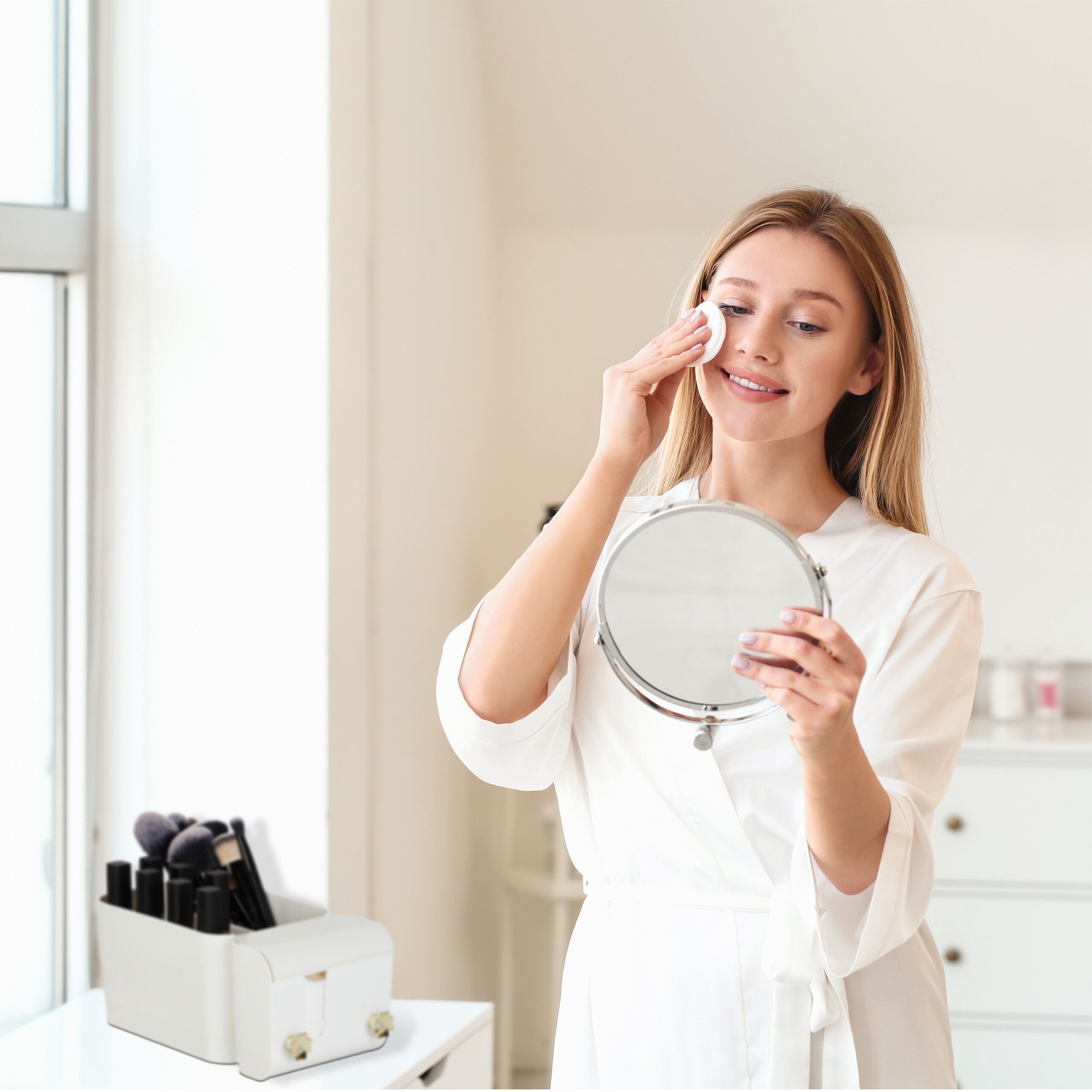 - Priekiniai Skyriai: Idealiai tinka vatos pagalvėlėms ir vatos tamponams laikyti, užtikrinant greitą ir patogų pasiekiamumą.