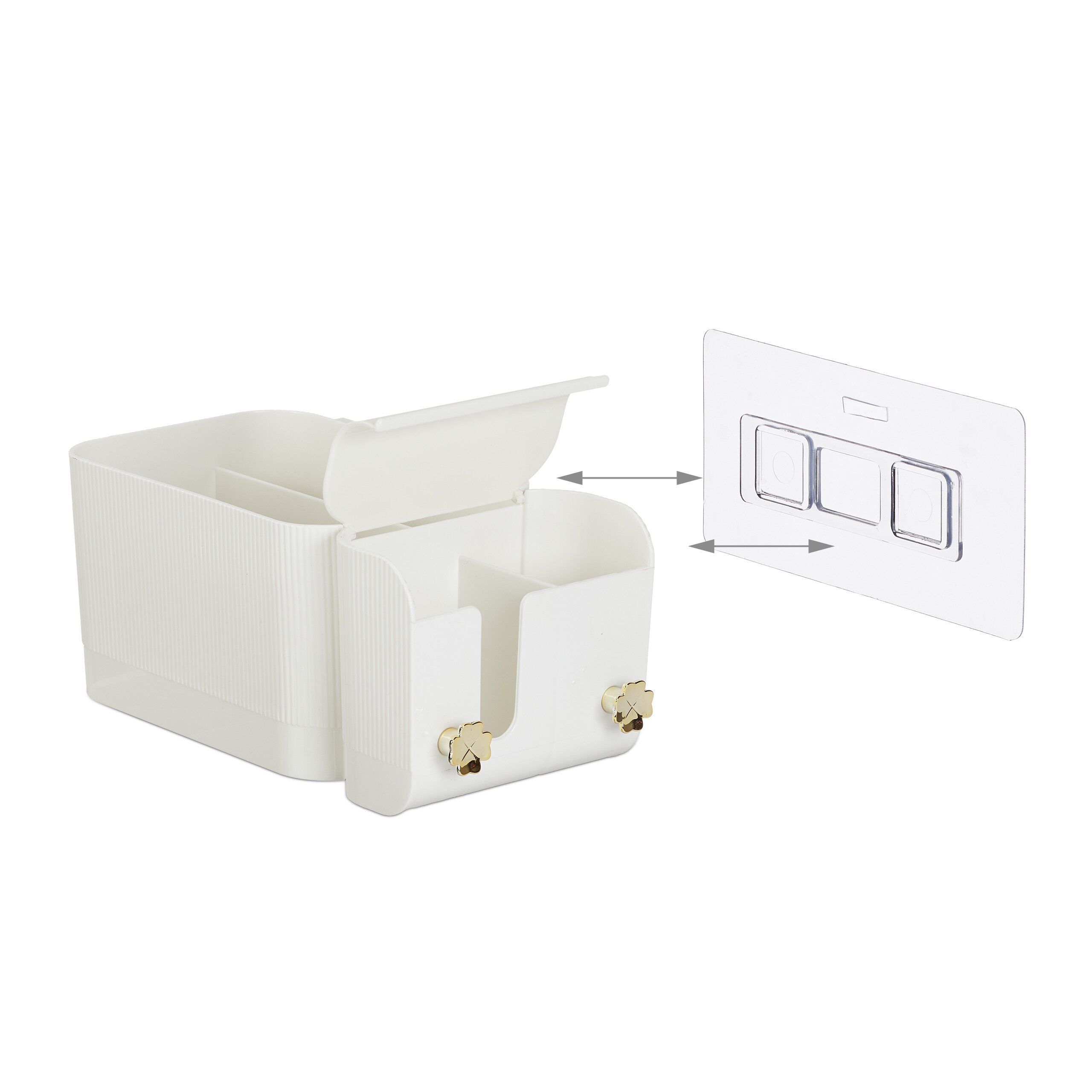 - Auksiniai Kabliukai: 2 dobilo lapo dizaino kabliukai ne tik vizualiai išryškina organizatorių, bet ir patikimai laiko kempinėles bei kitus smulkius daiktus.