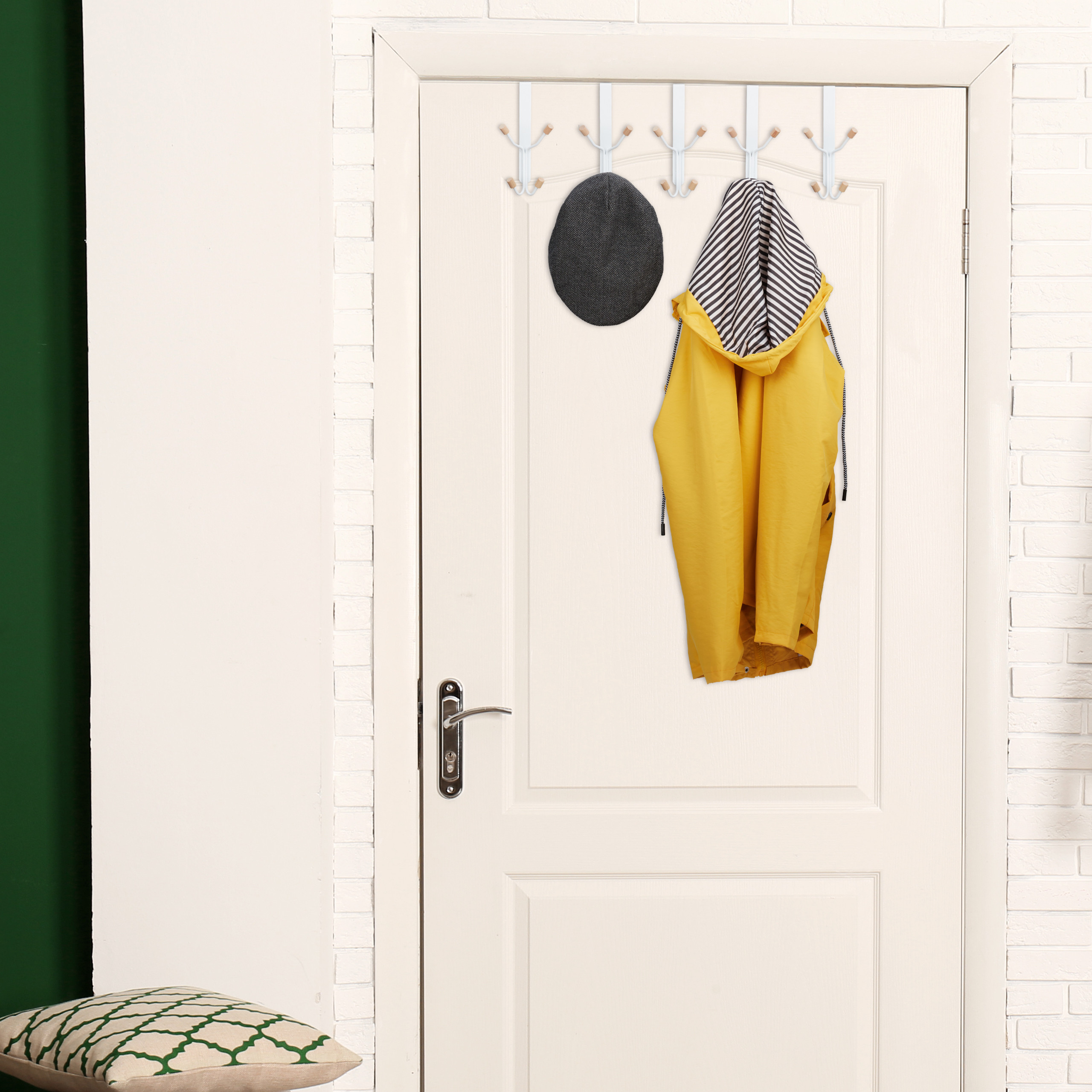 Ieškote praktiško ir stilingo sprendimo, kaip tvarkingai laikyti savo drabužius ir aksesuarus? Mūsų durų kabykla, sudaryta iš 5 vienetų komplekto, yra būtent tai, ko jums reikia! Kiekviena kabykla turi po 4 kabliukus, kurie padės efektyviai išnaudoti turimą erdvę ir suteiks jūsų namams tvarkos bei estetikos.