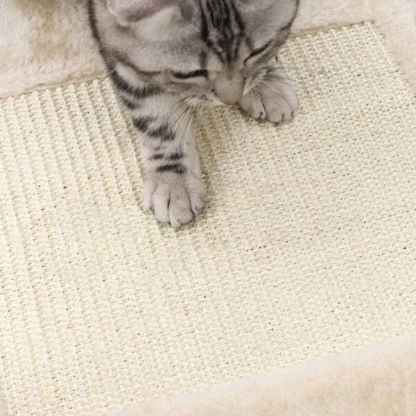 - Medžiaga: medžio drožlių plokštė (MDP), pliušas, sizalis, sustiprinto kartono stulpeliai