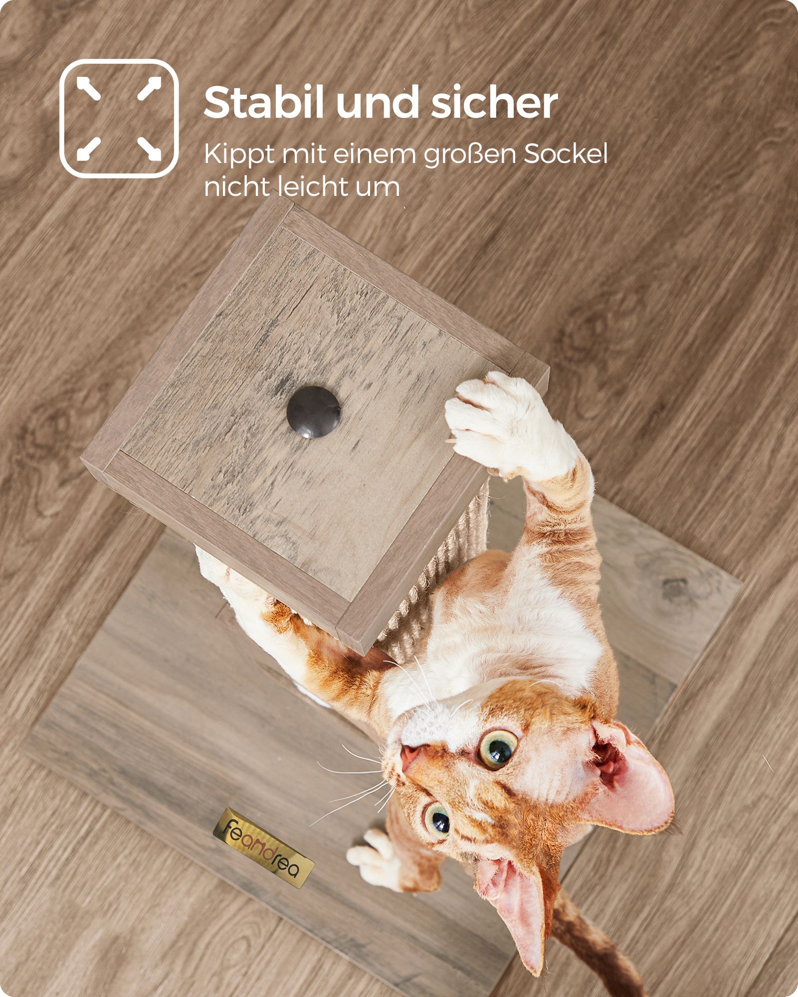 Ši kačių draskyklė yra ne tik puiki vieta jūsų katei draskyti ir žaisti, bet ir stilingas interjero akcentas. Leiskite savo augintiniui mėgautis komfortu ir pramogomis, o jūs – ramybe dėl savo baldų saugumo.
