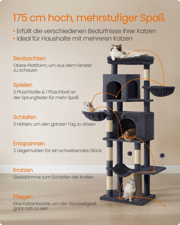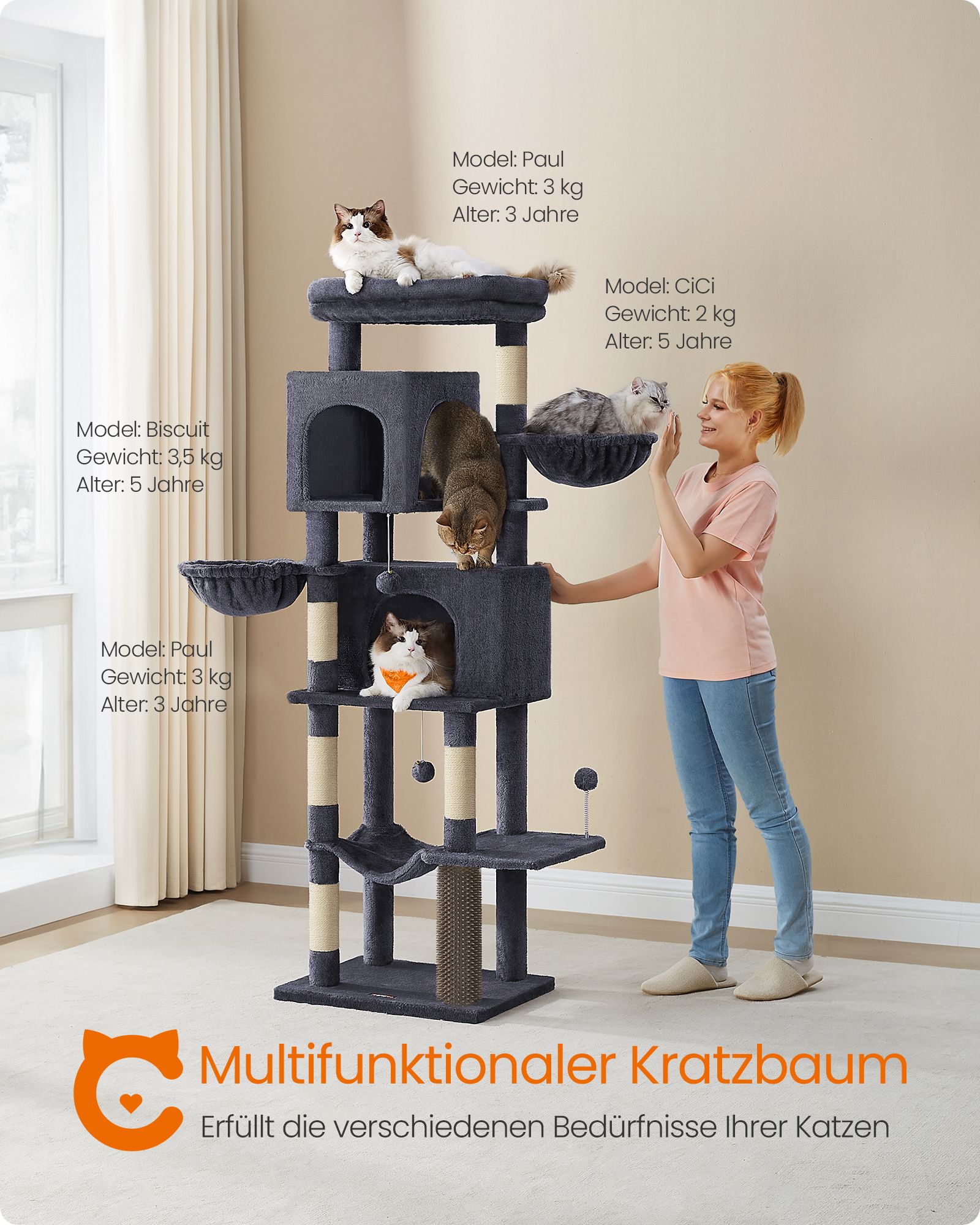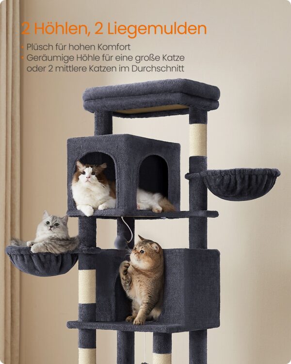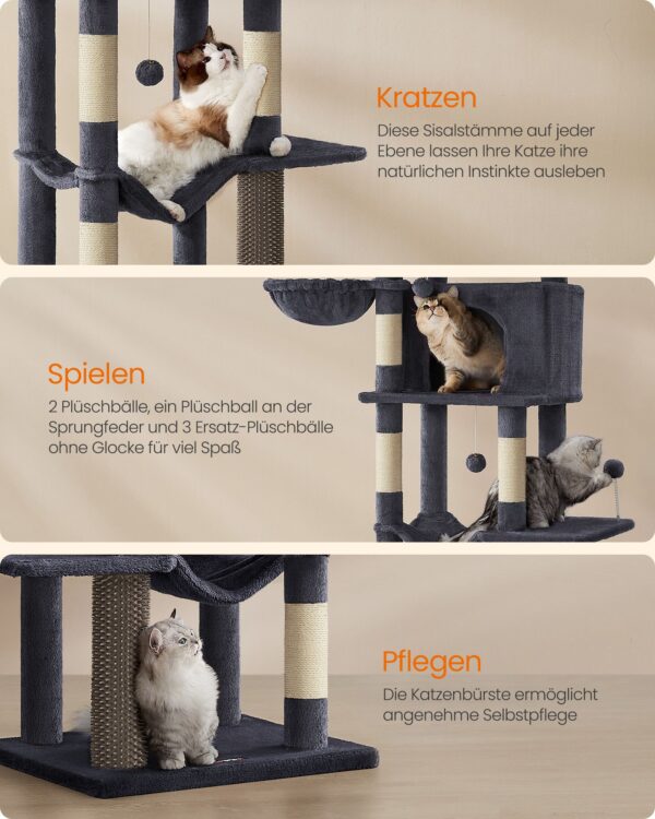 Kačių draskyklė 70x110x175cm – Tamsiai Pilkos/Smėlio Spalvos