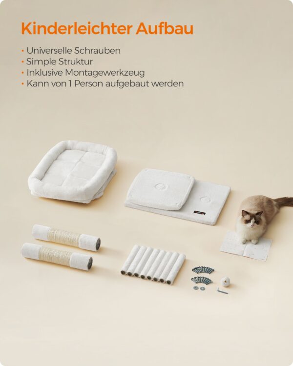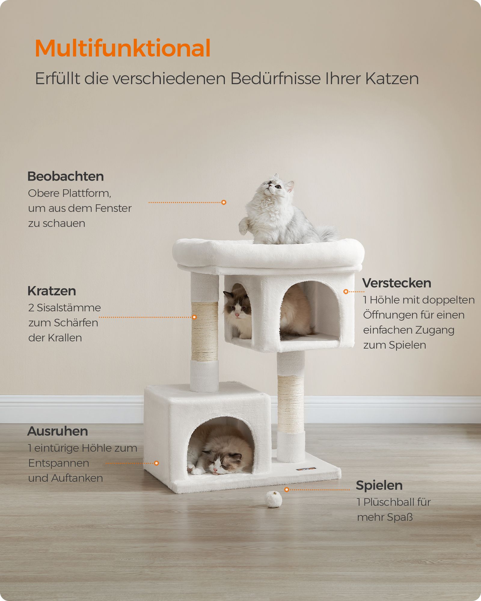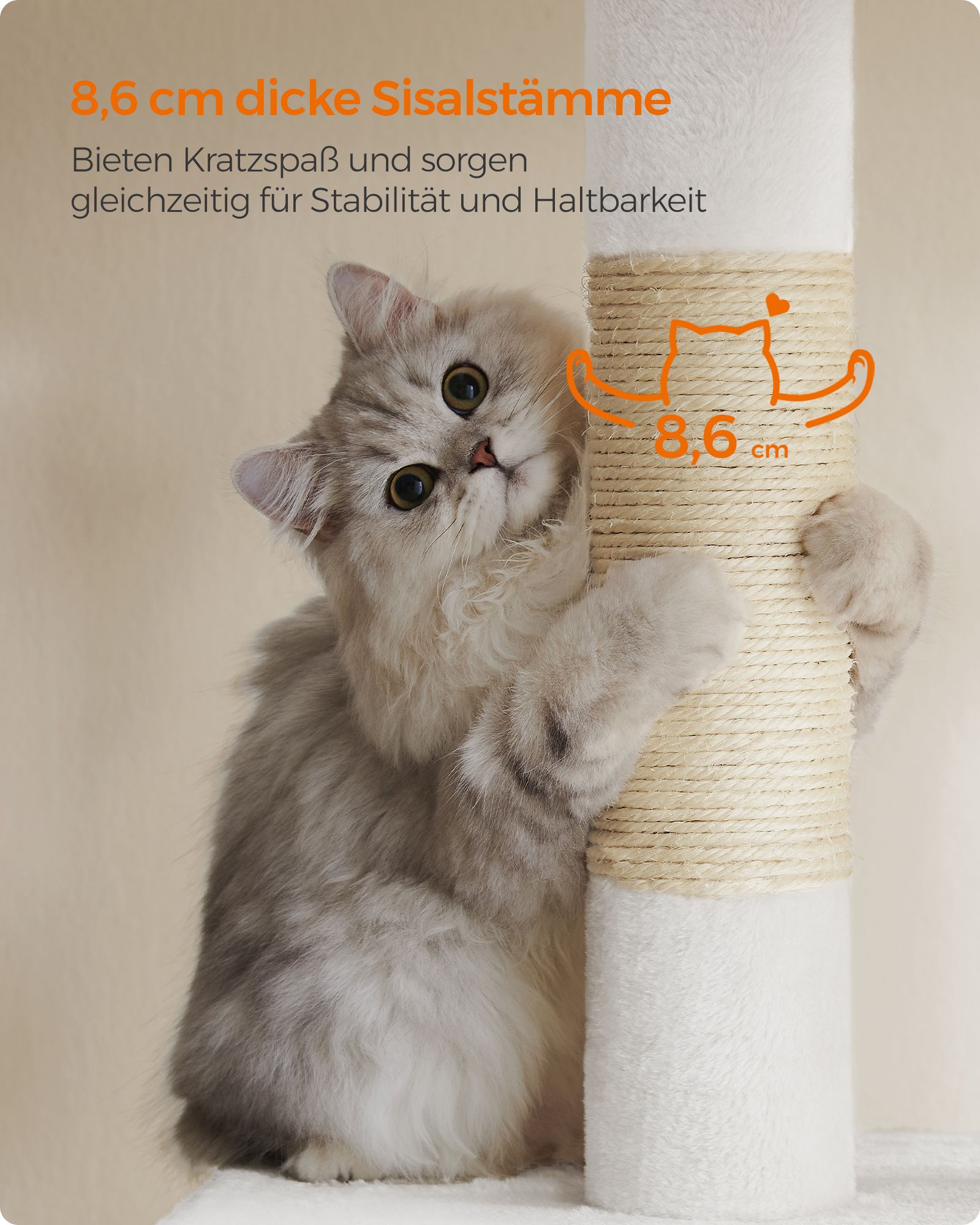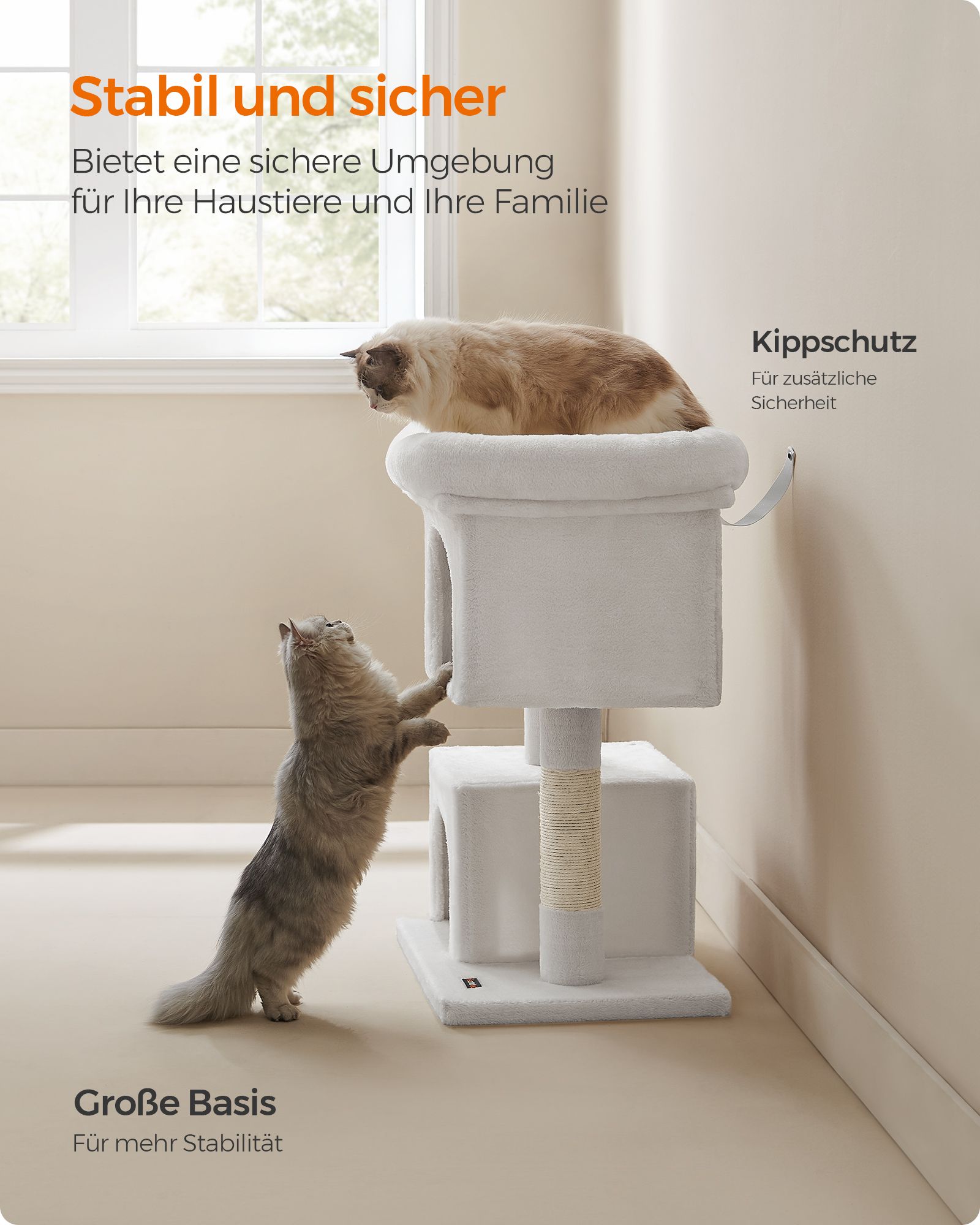 Ši draskyklė yra pagaminta iš aukštos kokybės medžiagų, užtikrinančių ilgaamžiškumą ir stabilumą. Pliušinis paviršius suteikia papildomo komforto, o sizalio stulpeliai yra puikūs nagų galandimui. Leiskite savo katei mėgautis žaidimais ir poilsiu su šia stilinga ir praktiška draskykle!