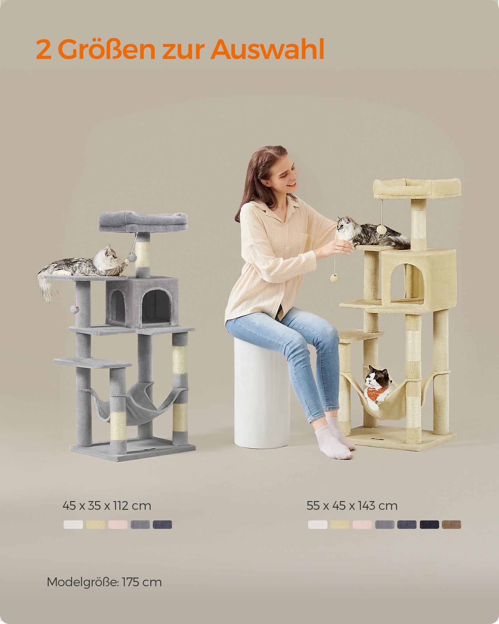 - Dydis: 70 x 59 x 143 cm (Ilgis x Plotis x Aukštis) – pakankamai erdvi, kad patenkintų net ir reikliausių kačių poreikius.