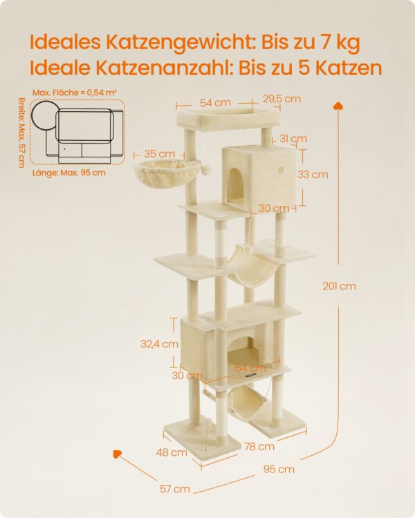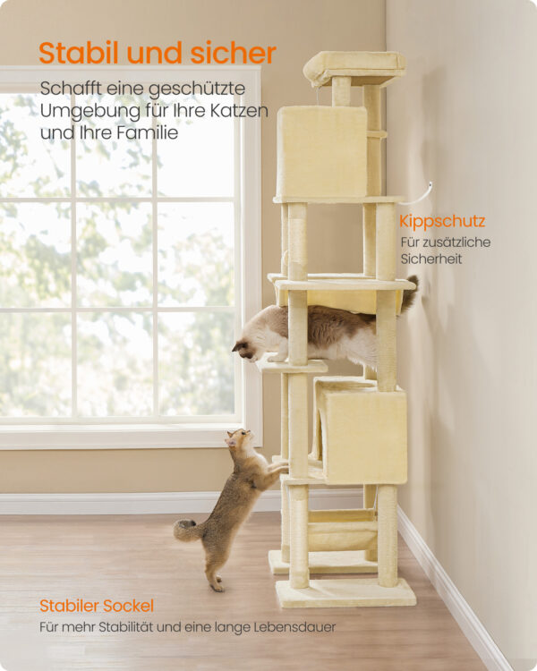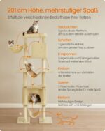 Ši kačių draskyklė 78x48x201 cm, smėlio spalvos, yra puikus pasirinkimas jūsų katės pramogoms ir poilsiui. Jos elegantiška smėlio spalva puikiai derės prie bet kokio interjero.