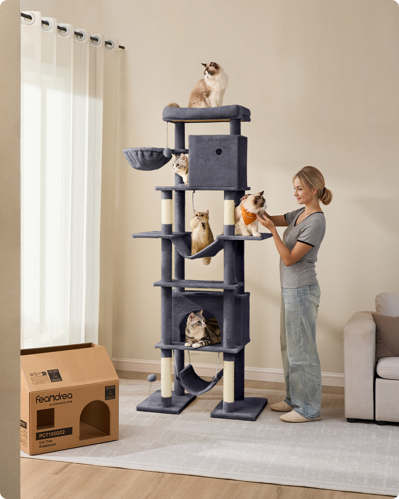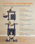 Kačių draskyklė 78x48x201cm., tamsiai pilkos/smėlio spalvos