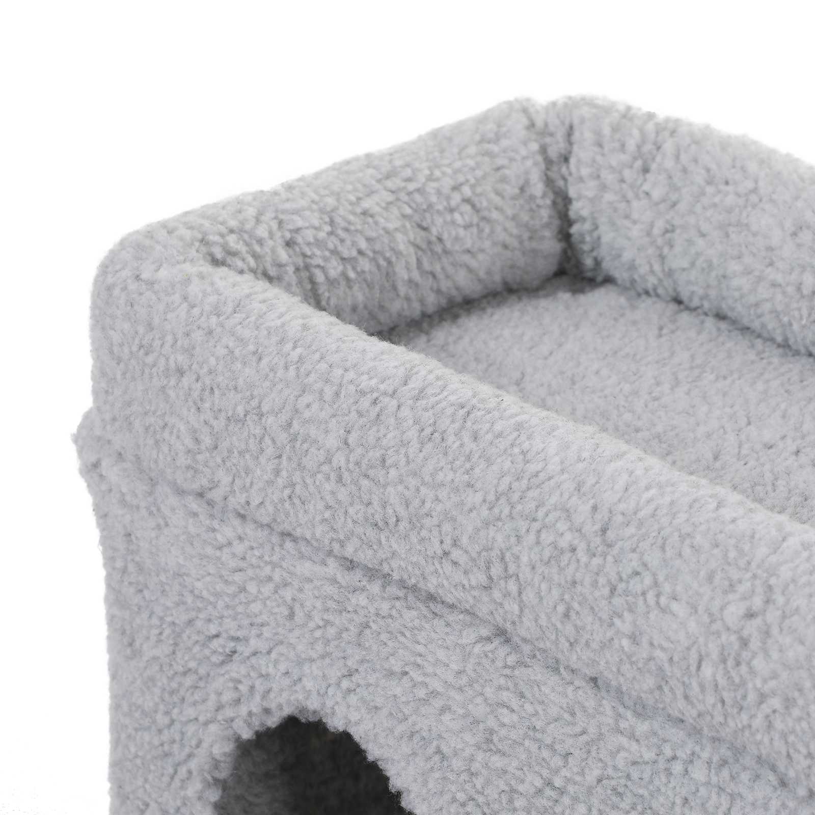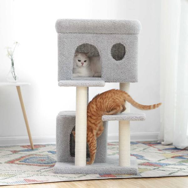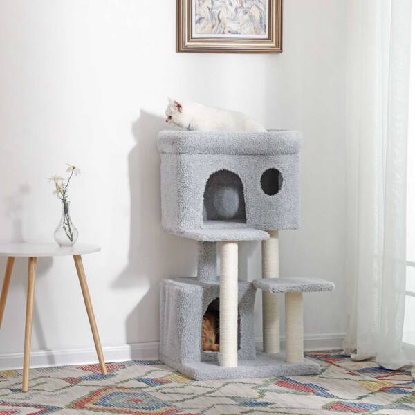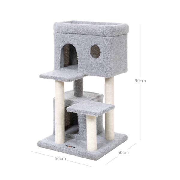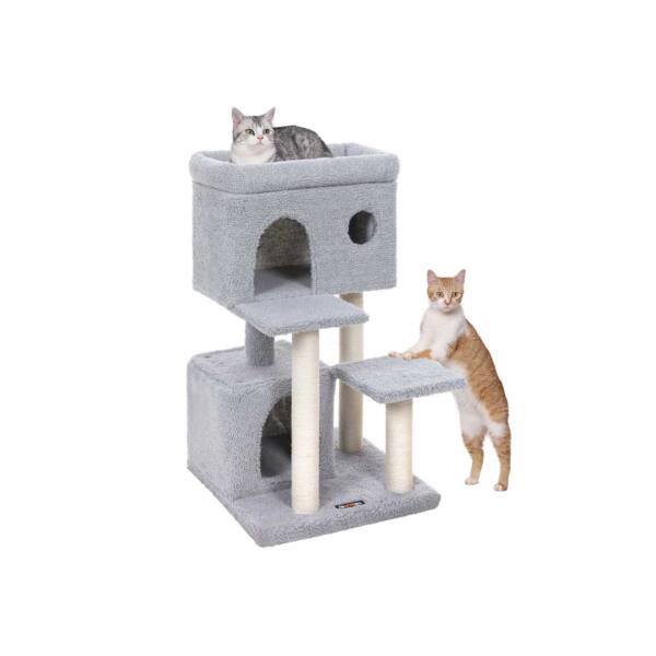 Daug privalumų turintis draskymasis viršuje parodytas kačių bokštas išlaikė kačiuko testą. Mums ypač patiko pūkuota apžvalgos aikštelė ir du jaukūs urvai. Tačiau stulpai, visiškai suvynioti į sizalį, taip pat buvo labai paklausūs. Jaunoms katėms patiko ir tai, kad draskymo stulpelis yra beveik tokio pat aukščio kaip palangė. Tai reiškė, kad jos galėjo žiūrėti pro langą be jokių problemų. Dviejų lygių dizainas puikiai tinka ir vyresnio amžiaus katėms.