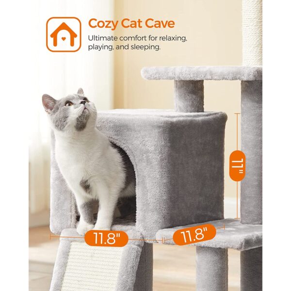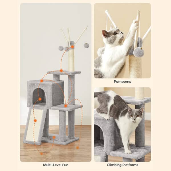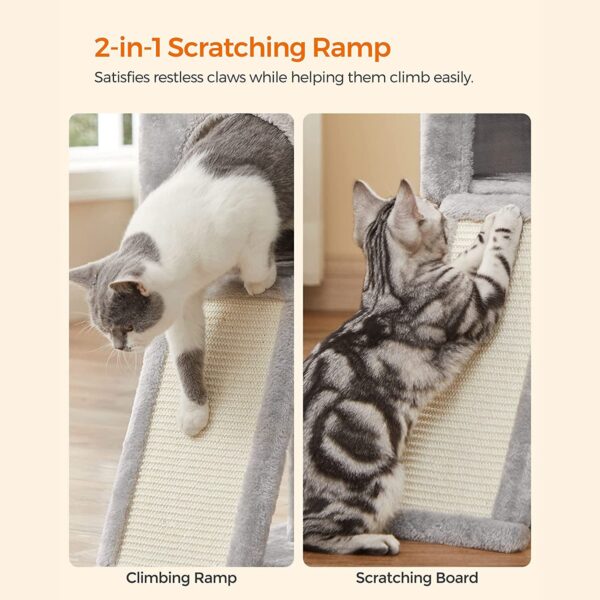 Tinka visoms katėms: Daugiapakopis dizainas ir rampa leidžia lengvai įlipti ir nulipti tiek kačiukams, tiek vyresnėms katėms.