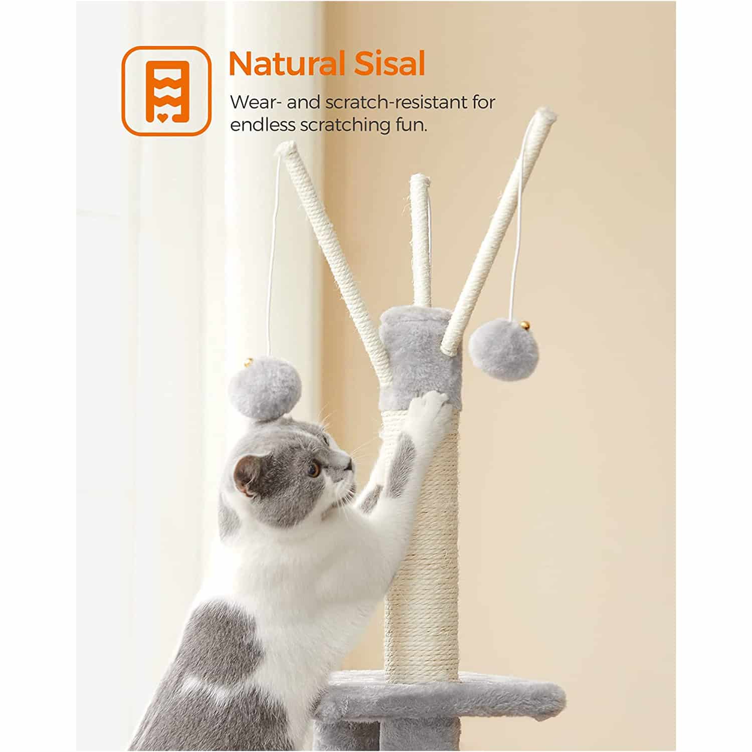 Visapusiškas komfortas: Visa draskyklė yra padengta minkštu pliušu, todėl jūsų katės jausis patogiai bet kurioje vietoje.