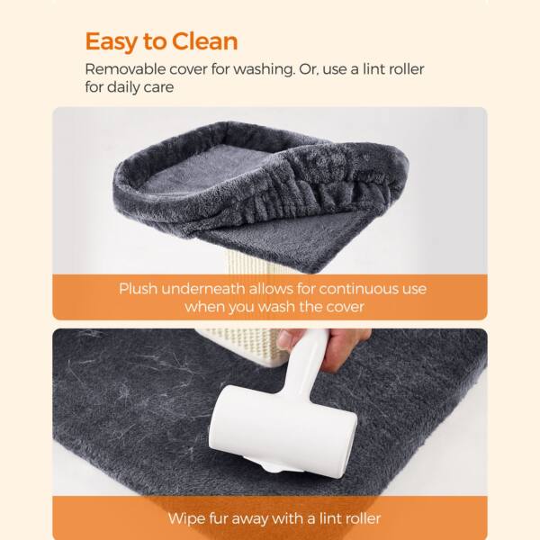 - Lengva valyti: Kačių draskymo stulpelio platforma yra nuimama plovimui ir gali būti valoma plaukų voleliu.
